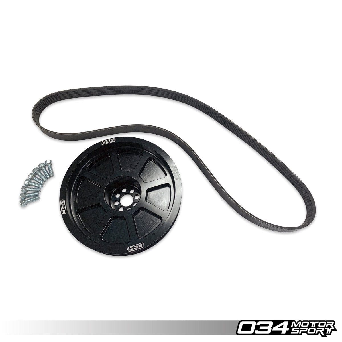 The 034Motorsport 3.0 TFSI Supercharger 179mm Crank Pulley Upgrade is machined from a single piece of 6061-T6 billet aluminium, and black anodised for an attractive finish resistant to corrosion. This design is 64% lighter than the OE pulley, significantly reducing rotational weight and parasitic loss. This is a single piece inner and outer pulley, not a pulley "overlay", which adds rotational weight.