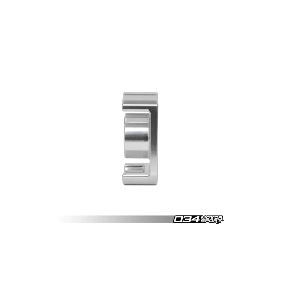 The 034Motorsport MQB Upper Dogbone Mount Insert (patent pending) is required for any MQB platform MkVII Volkswagen Golf/GTI/R, 8V/8V.5 Audi A3/S3/RS3 & MkIII Audi TT/TTS/TTRS using an aftermarket dogbone mount and dogbone mount insert. Aggressive driving that causes violent drivetrain movement, such as burn-outs that induce wheel-hop, will cause the upper and lower dogbone mounts to exert a bending moment on the dogbone mount arm, causing it to bend, and in some cases fail. When this failure occurs, the bottom of the engine is unconstrained and the engine will cause damage to other components in the engine bay. The 034Motorsport MQB Upper Dogbone Mount Insert eliminates these bending forces, allowing the dogbone mount to perform as designed during these violent events.