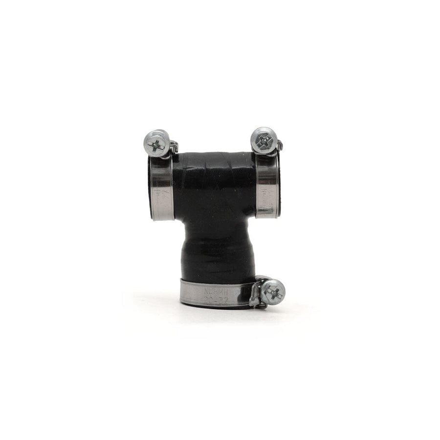 Fully reinforced silicone 1.8T PCV Check Valve T-Hose to replace the crumbling factory rubber hose. This hose fits longitudinal and transverse 1.8T engines that have a rubber T-hose for the PCV check valve.
