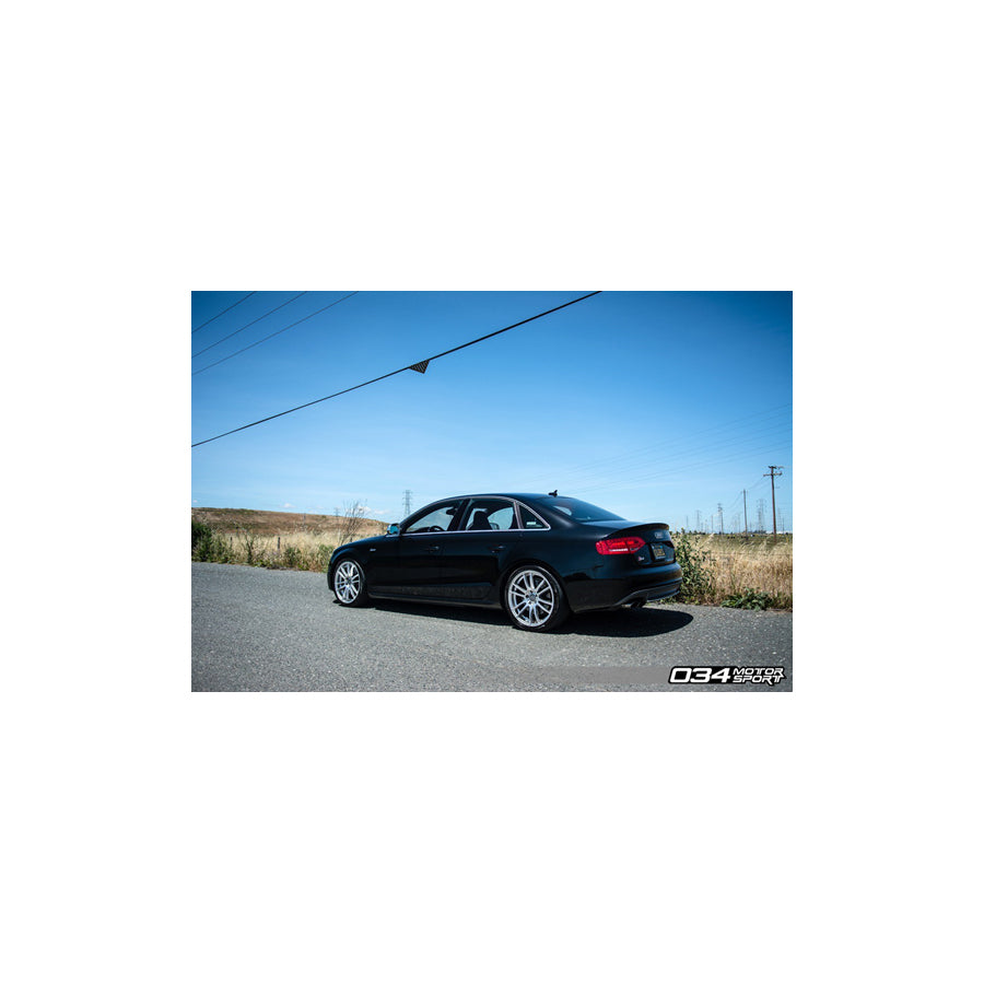 Dynamic+ Lowering Springs were thoroughly evaluated on the street and track on 034Motorsport's B8 Audi S4 Development Vehicle, and by independent Audi enthusiasts before release. The selected spring rates, unique dual-rate spring design, and ride height are the culmination of months testing - thousands of miles of commuting and countless track days - resulting in a lowering kit that is perfectly matched to the factory dampers.