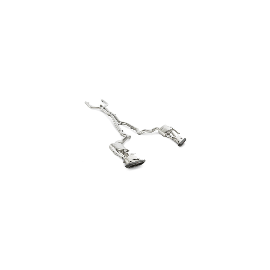 Perfectly formed using specially developed ultra-lightweight titanium alloys and finished with hand-crafted matte carbon-fibre tailpipes. The system replaces both the base and performance exhausts fitted to the Mercedes-AMG C 63 and C 63 S. This stunning system includes parts cast in the company’s in-house foundry, featuring an active X connection and an additional pair of exhaust valves behind the rear mufflers, designed to provide optimal control of the exhaust sound for the best aural enjoyment. With two defined sound characteristics and three different driving sound settings, the system has been perfectly tuned to deliver the very best sound in all modes. The optional Akrapovič Sound Kit controller allows the user to choose the exhaust tone regardless of the chosen mode of the vehicle and is a recommended upgrade when replacing the base exhaust system. An increase in performance and torque and a huge weight savings in excess of 45% makes this a very serious performance upgrade. Because it is ECE type approved with no need to remap the ECU or add any other parts, it is just a simple plug-and-play installation. The exquisite Akrapovič Evolution Line (Titanium) exhaust system adds performance and style, along with an amazing soundtrack.