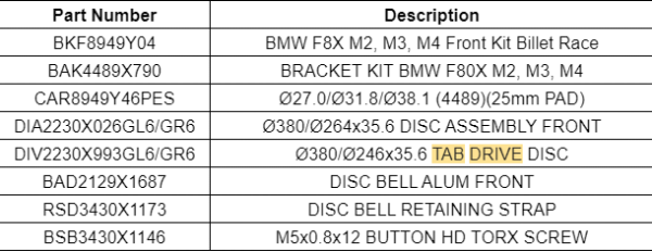 Suitable for Sprint & Endurance racing. This kit has been developed for the BMW F-Series with the factory race team.