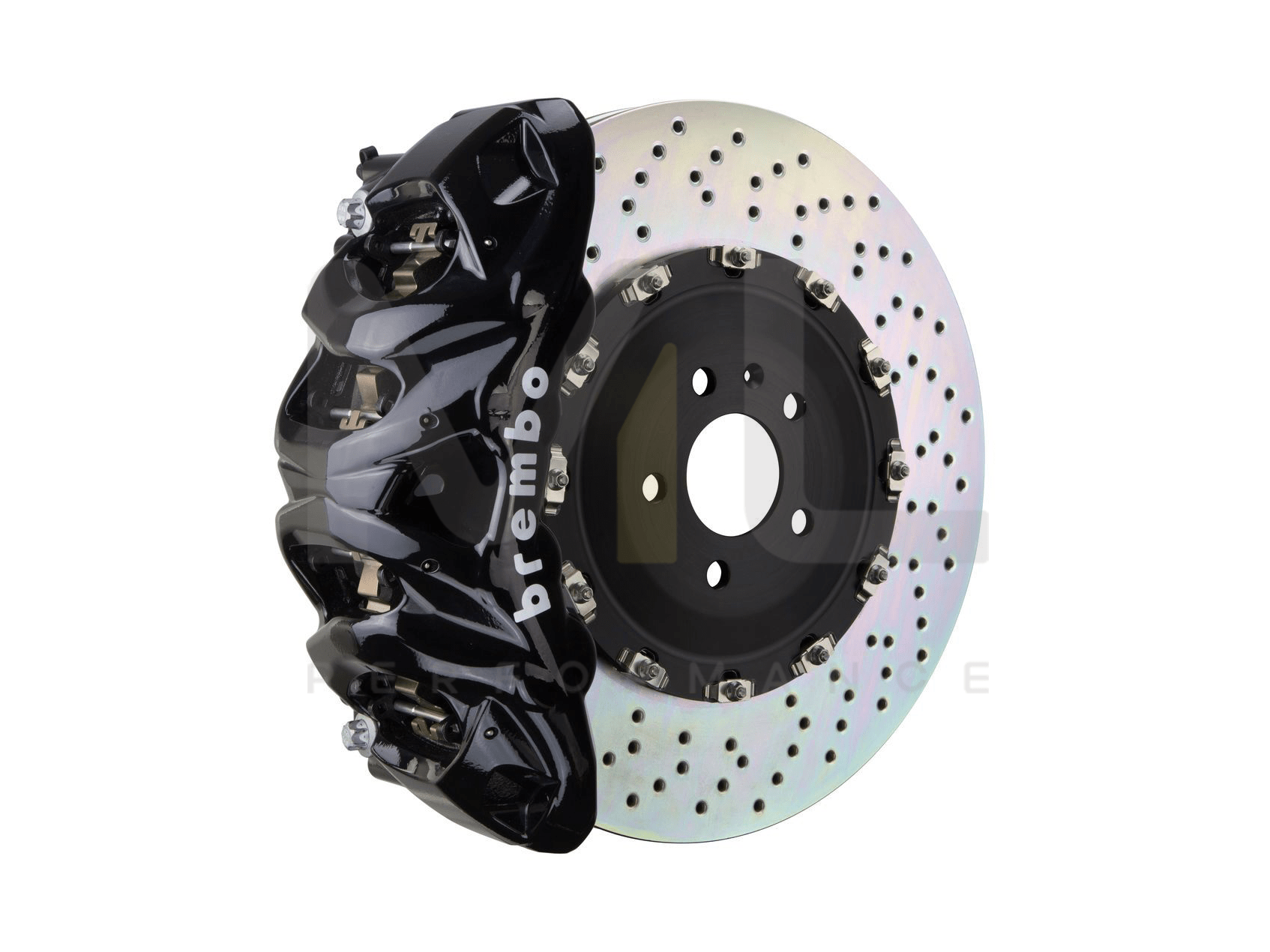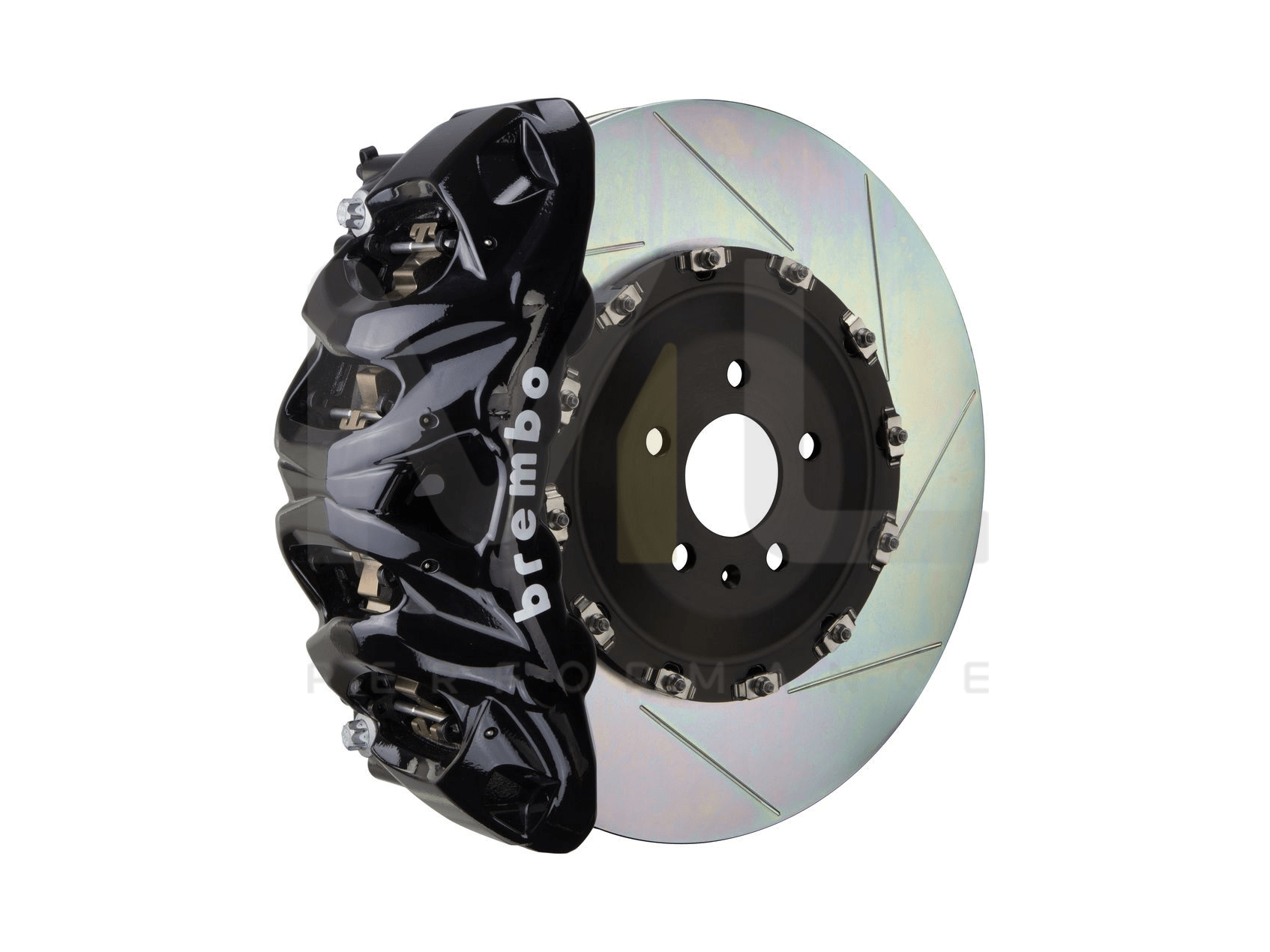 The Brembo GT Street Big Brake Kit with Drilled or Slotted Rotors with 8-piston cast nonobloc aluminium calipers.