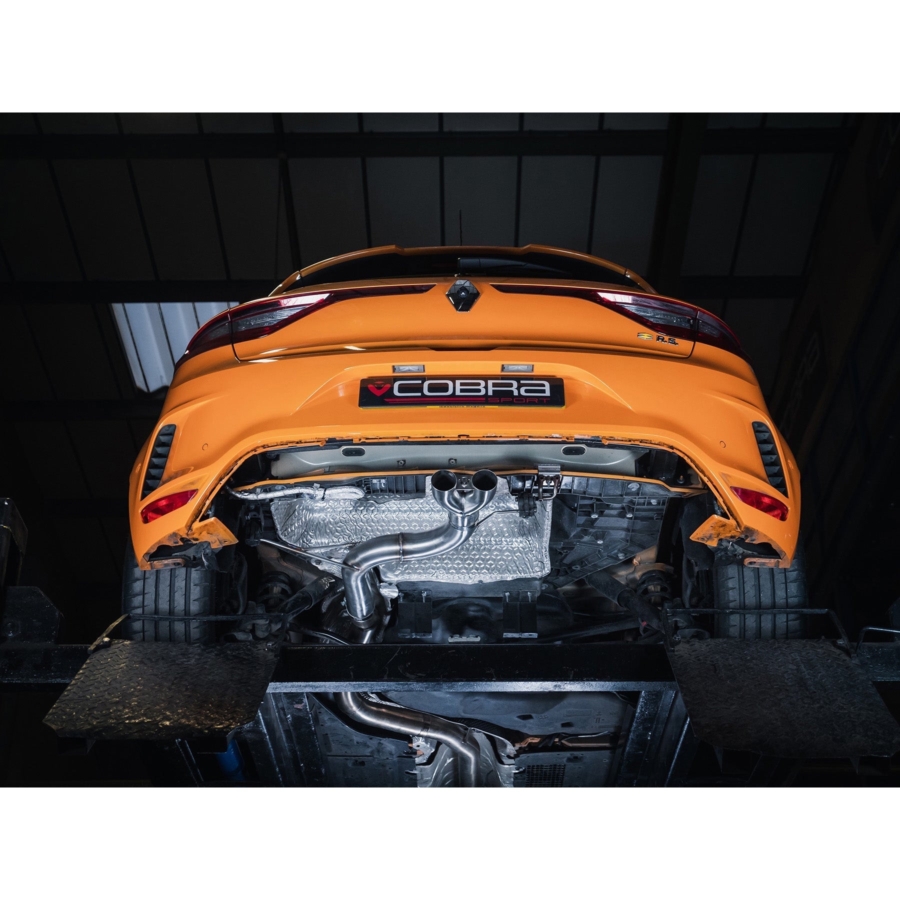 Note - This product is designed without a rear silencer and will be loud.Cobra Sport performance exhausts enhance the sound, looks and quality of your vehicle giving you the ultimate driving experience.Our sports exhausts range is fully guaranteed to give you assurance of our quality. This Mk4 Megane RS performance exhaust is made in 3"/76.2mm pipework and fits from the catalyst/GPF section backwards, replacing the centre and rear sections. The resonated exhaust includes the centre silencer and has a subtle but sporty tone. This exhaust however, is also available as a non-resonated version which is a louder option as it excludes the centre silencer and therefore, has a sportier exhaust note. This Cobra Sport performance exhaust fits from the catalytic converter/GPF section backwards, replacing the centre and rear sections, keeping the stock catalyst and GPF (gasoline particulate filter) in place.Venom (Non-Resonated) Cat Back Test Results (Race Mode):Sound - Engine at Idle: 87.5dB (+18.8dB) - Static 4,000rpm test: 93.9dB (+12.9dB) Venom (Resonated) Cat Back Test Results (Race Mode):Sound - Engine at Idle: 86.7dB (+18.2dB) - Static 4,000rpm test: 89.1dB (+8.1dB) Please note: This performance exhaust upgrade is non-valved and does not fit later Trophy models with the factory-fit exhaust valve, fitment to valved models may result in a warning light. All relevant fittings and gaskets are supplied.Download Renault Megane R.S. PDF Brochure >>