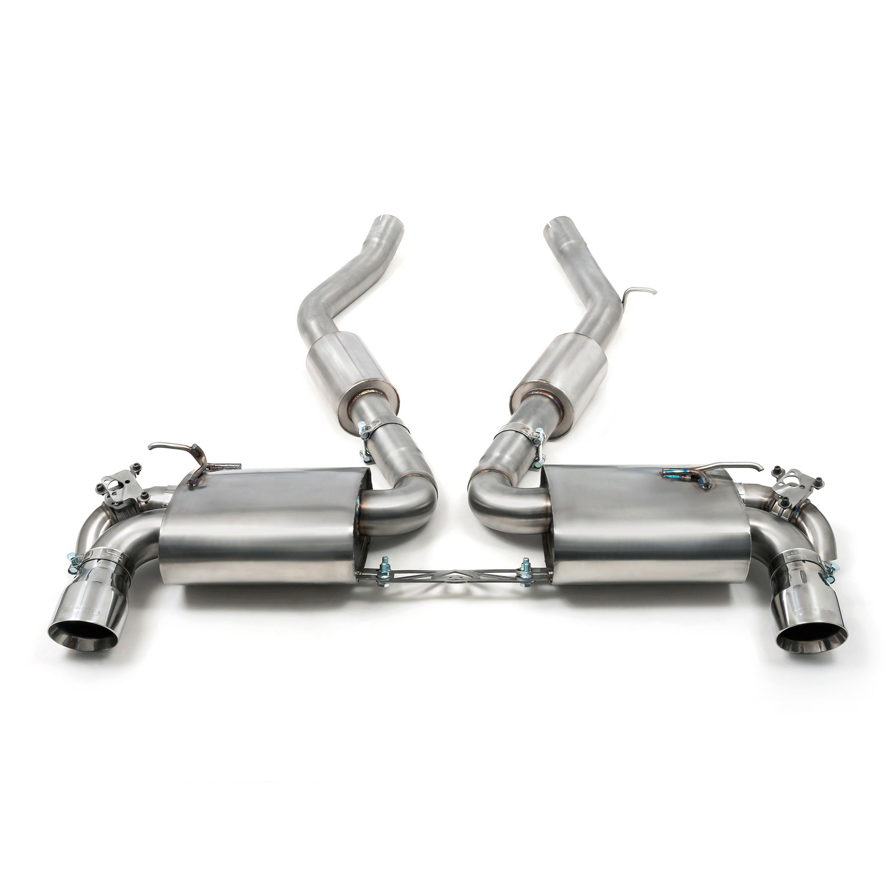 This GR Supra performance exhaust is made in 3" (76.2mm) pipework and fits from the Gasoline Particulate Filter section backwards (GPF-back), replacing the centre and rear sections.This exhaust offers improvement in terms of exhaust tone, bass and sound level whilst keeping the stock catalyst and GPF in place. This exhaust system has been designed to be easily upgradable to a full turbo-back exhaust in the future by purchasing additional sections.The twin valved system offers a jekyll and hyde personality, with the exhaust valves closed the exhaust is refined - allowing the driver to eat up miles in total tranquillity. Then when you hit the country lanes and unleash the B58, the exhaust valves open, and exhaust gases are split between the rear silencer and rear silencer by-pass, delivering the ultimate audible upgrade whilst keeping the factory gasoline particulate filter and catalytic converter in place. GPF Back Test Results:Sound - Engine at Idle: 65dB (+7dB) - Static 4,000rpm test: 91.7dB (+6.7dB)Please Note: The resonated exhaust includes the centre silencer and has a subtle but sporty tone. This exhaust however, is also available as a non-resonated version which is a louder option as it excludes the centre silencer and therefore, has a sportier exhaust note.This 'Valved' exhausts retain the use of exhaust valves. When switching drive modes (e.g. Eco to Race mode) your exhaust tone will continue to swap from quieter to louder tones as before. The single valve setup offers a more subtle change in tones when compared with the twin valve setup. All relevant fittings and gaskets are supplied.