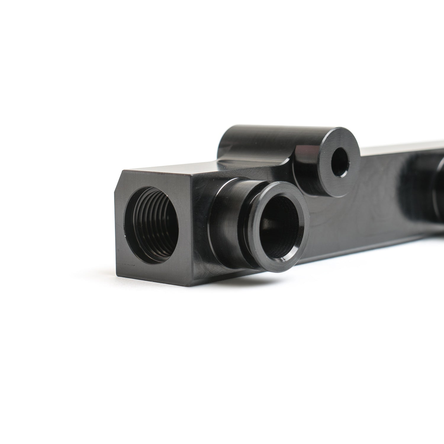 - Proprietary billet aluminum high-flow fuel rail (hard anodized for E85 fuel)
