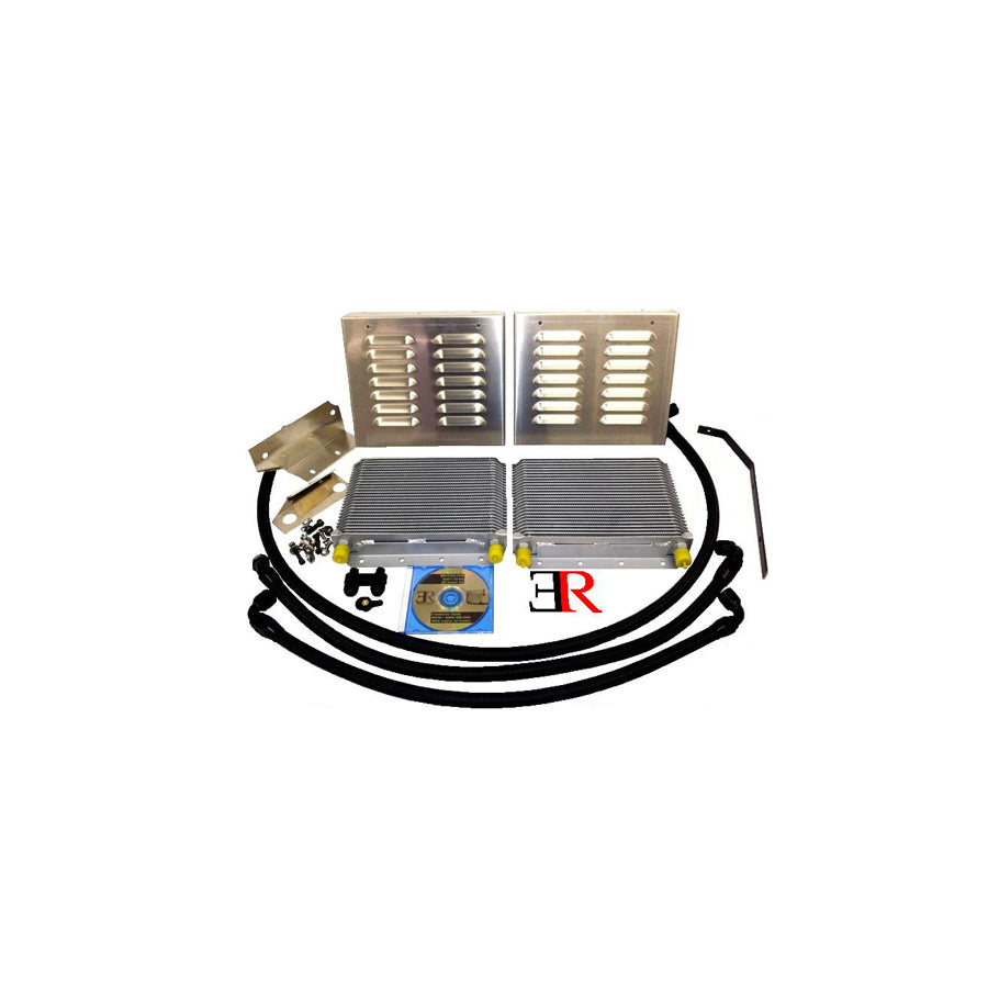 - Twin coolers have a total of 288 cubic inches of core! Factory oil cooler has 41 cubic inches.