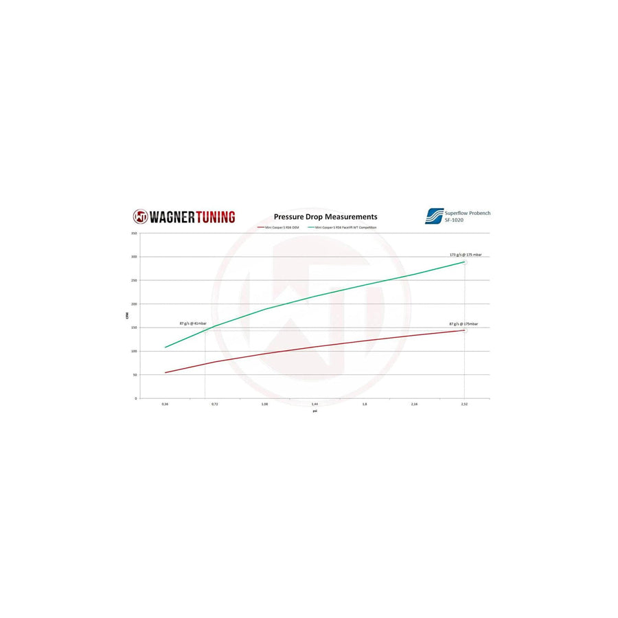 Wagner-Tuning "Competition" Core with high cooling performance and light weight (5,0kg). Optimized by CAD, the new competition-high-speed core and cast aluminium end tanks give this intercooler excellent cooling properties. Flow analyses and simulations were created to optimise the design for best possible Internal Airflow. This intercooler is the best choice when it comes to performance gains and low intake temperatures. A lot less pressure drop then OEM Intercooler. Anti Corrosion protective Coating with perfect thermal heat dissapating character. Optimal cooling with clearly more power. Kit is ready for installation, 100% perfect fit. Fitment is easy, replacing the OEM intercooler. All of our products undergo rigorous quality control.