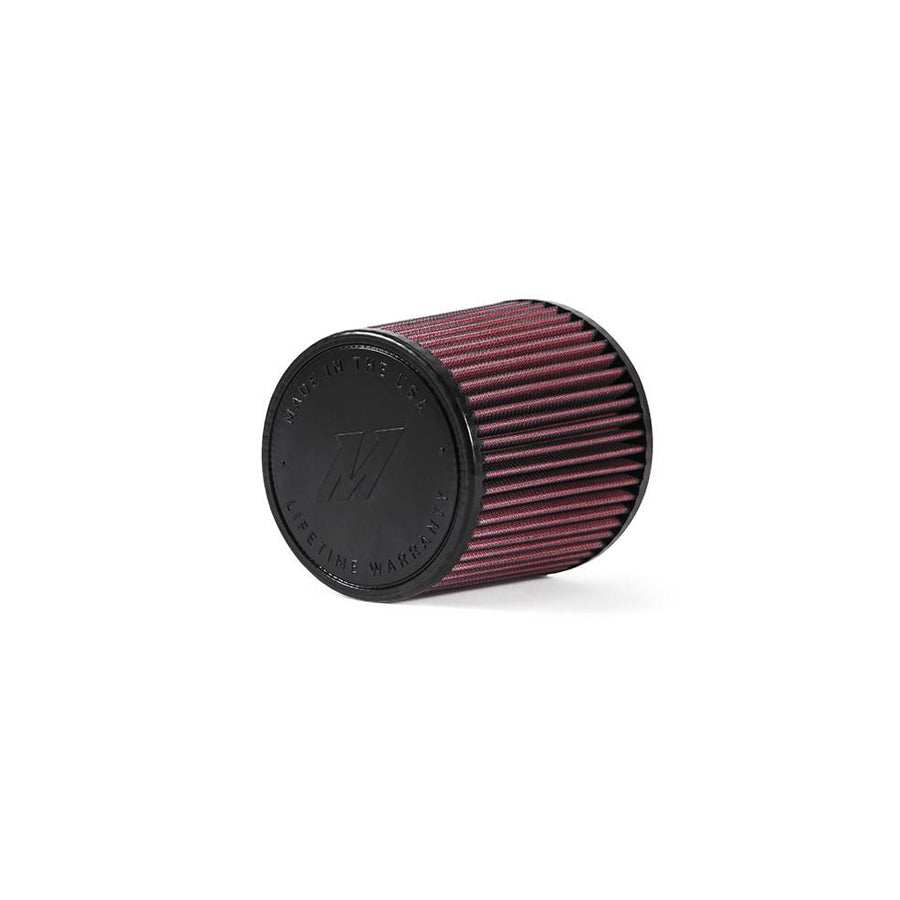- Mishimoto High-Flow Oiled Air Filter receives maximum airflow from the front of the vehicle