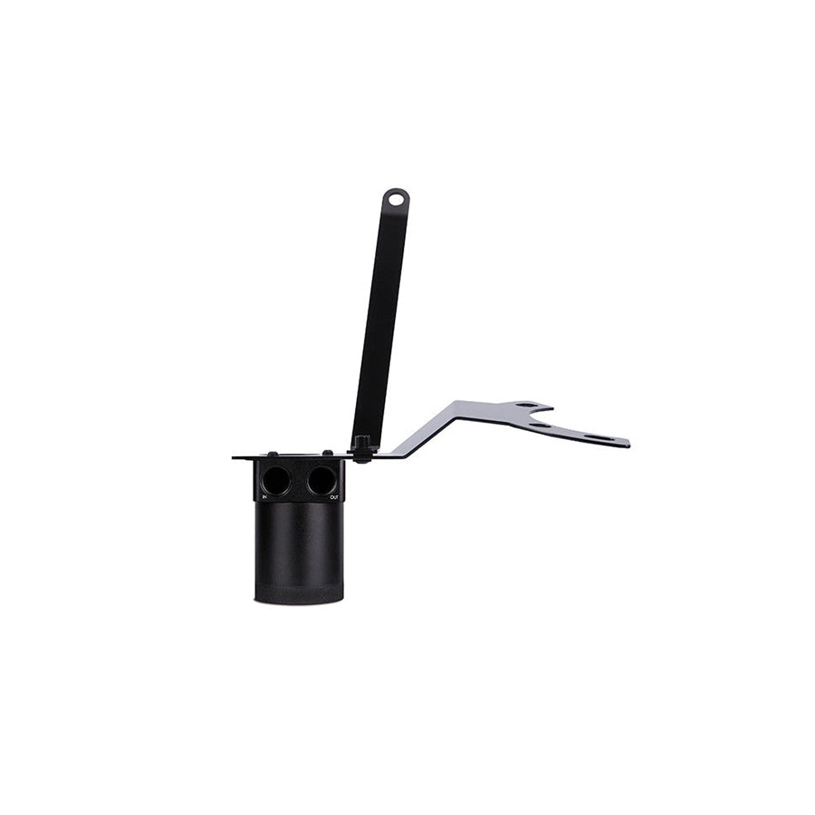 - Single 2-Port Compact Baffled Oil Catch Can with application-specific lid mounts in line with the CCV system to separate oil particles using 50 micron bronze filter