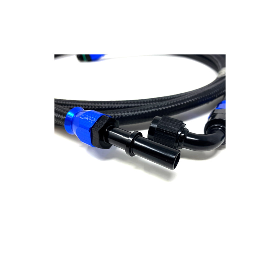 The Precision Raceworks AN6 Fuel line upgrade options are a direct replacement from the fuel pump on the passenger side of the car to the high pressure fuel pump (or MPI).