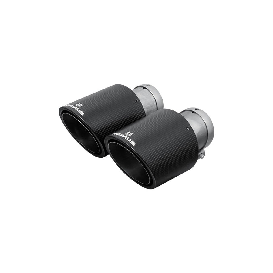 Tailpipe set consisting of 2 tail pipes Ø 102 mm angled, carbon with titanium internals or chrome, with adjustable spherical clamp connection.