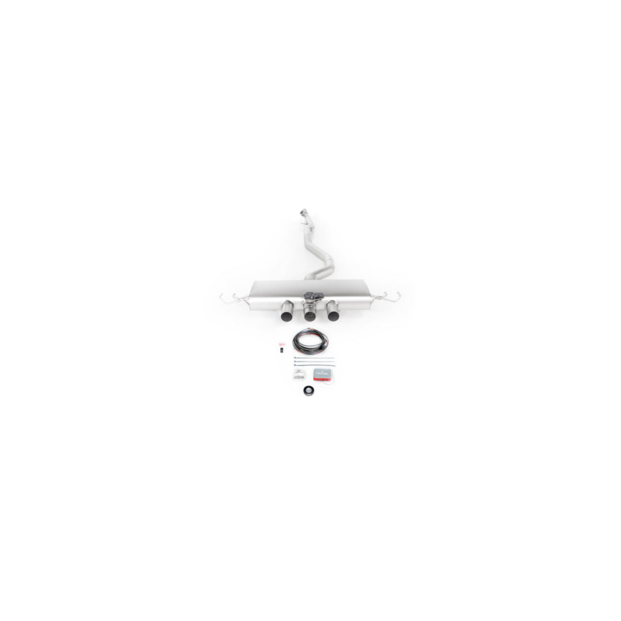Cat-back-system consisting of a non-resonated section and sport exhaust centred (without tail pipes), with integrated valve, incl. EC type approval