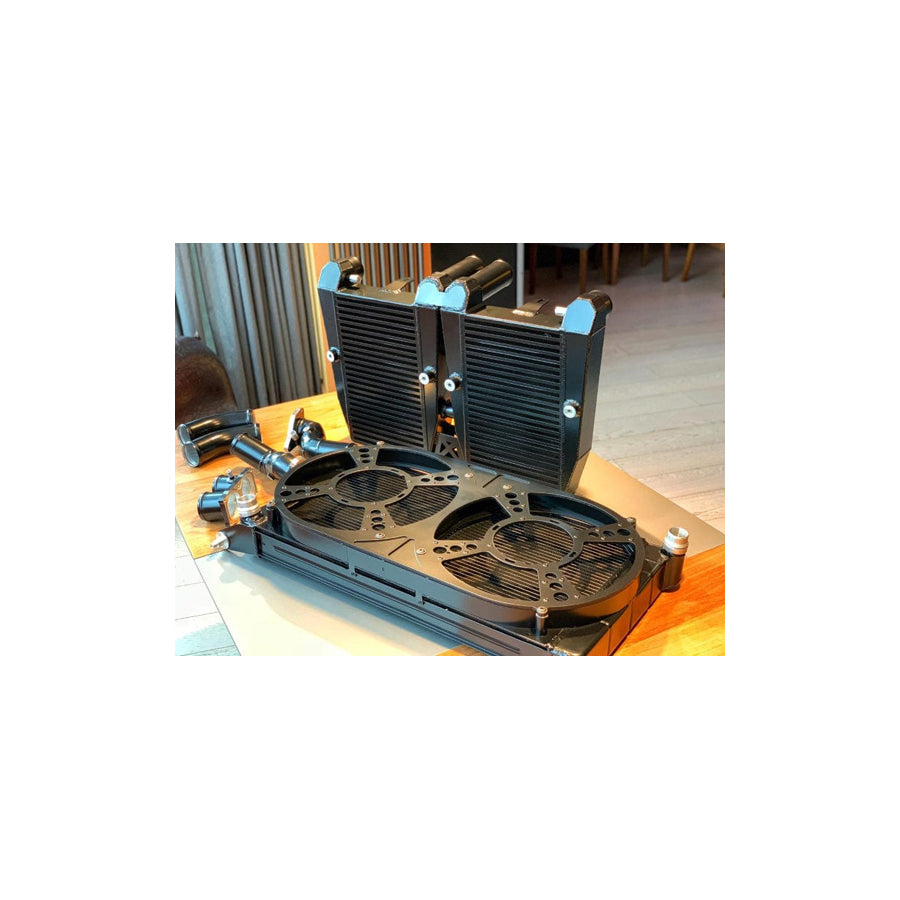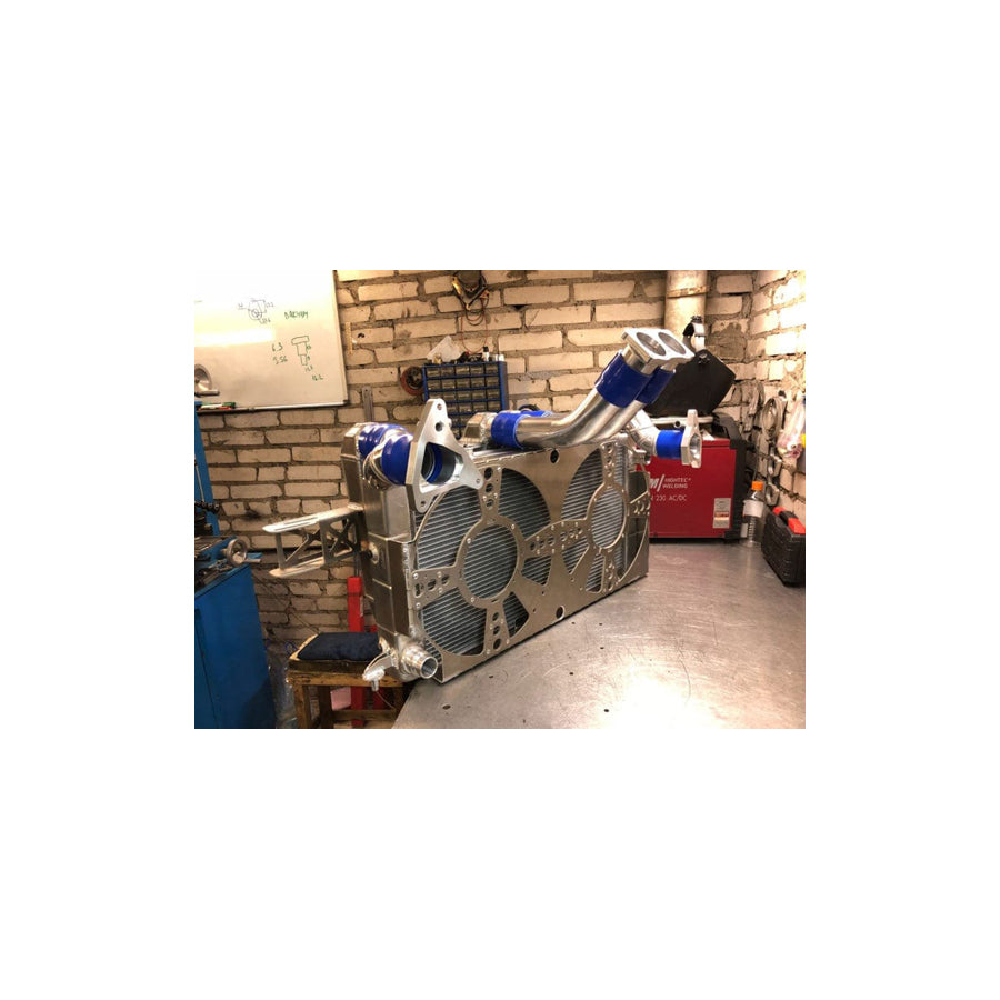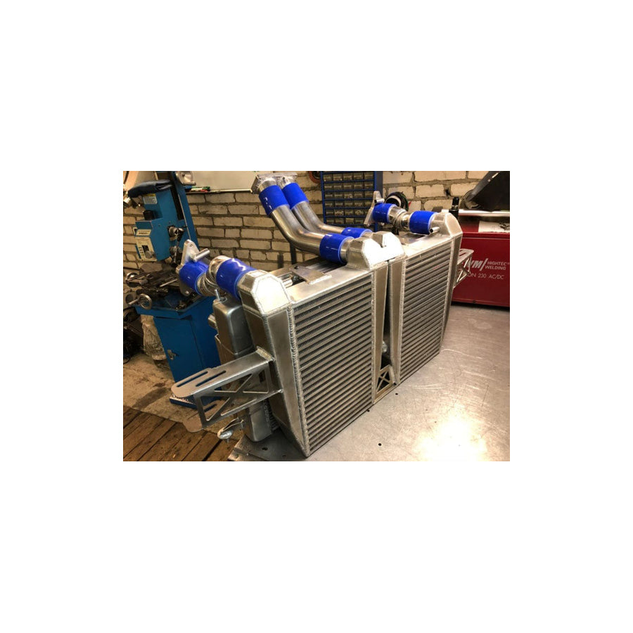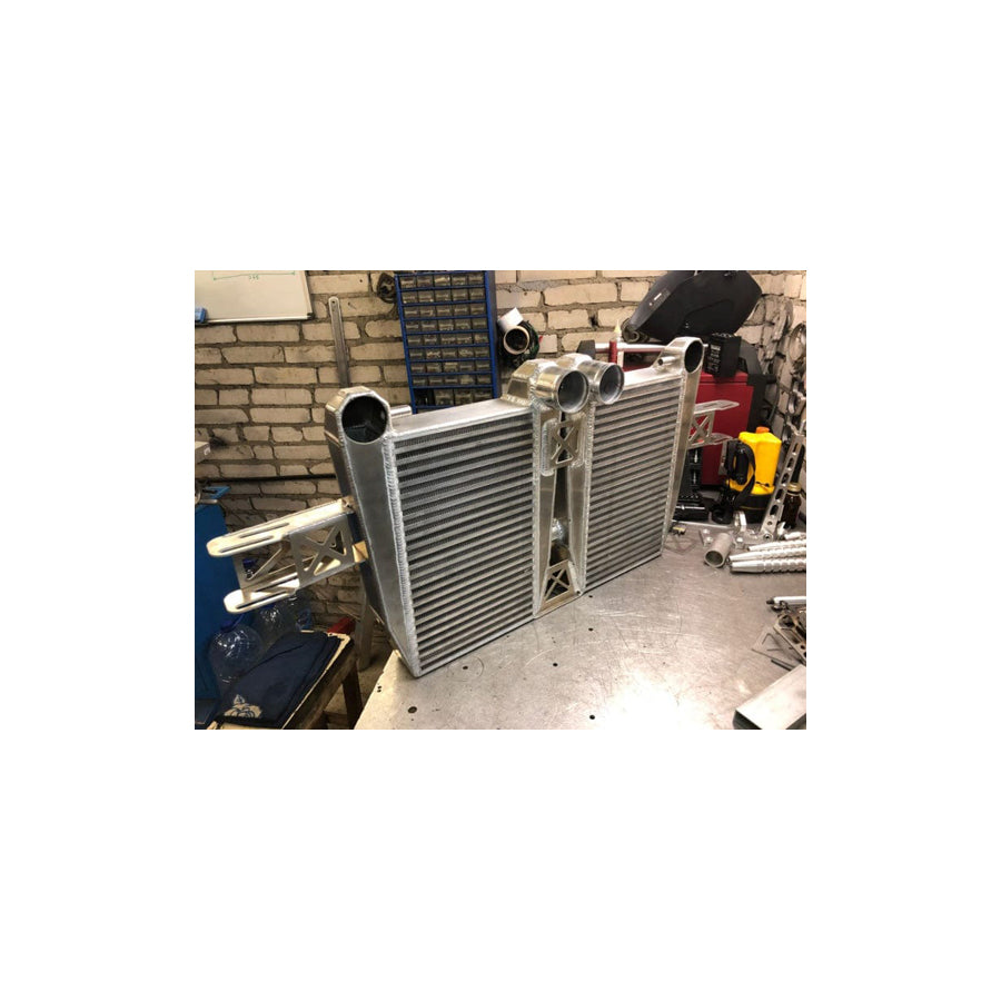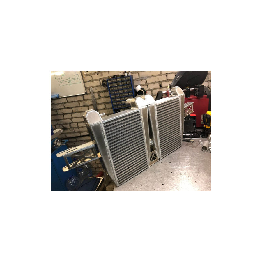 The TURBO-SHOP Audi Air Intercooler Kit is a high performance Intercooler that lowers intake air temperature up to 30°C compared to factory water cooling system and increases power up to 60 hp at Stage 2 modifications