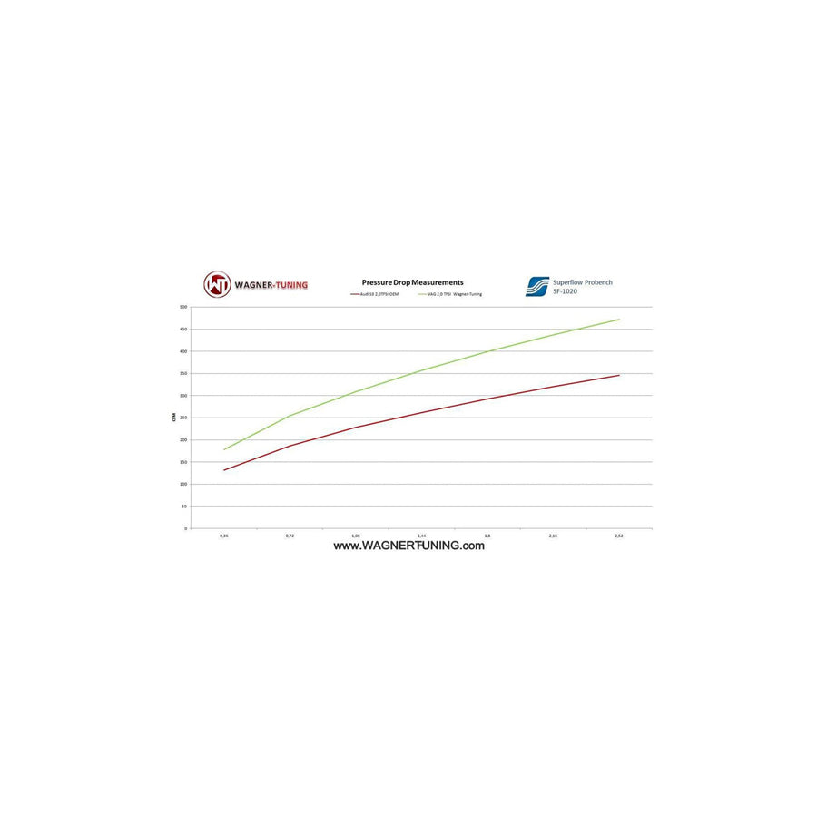 Wagner-Tuning "Competition" Core with high cooling performance and light weight (9,3KG). Optimized by CAD, the new competition-high-speed core and cast aluminium end tanks give this intercooler excellent cooling properties. Flow analyses and simulations were created to optimise the design for best possible Internal Airflow. This intercooler is the best choice when it comes to performance gains and low intake temperatures. A lot less pressure drop then OEM Intercooler. Anti Corrosion protective Coating with perfect thermal heat dissipating character. Optimal cooling with clearly more power. Kit is ready for installation, 100% perfect fit. Fitment is easy, replacing the OEM intercooler. All of our products undergo rigorous quality control. Including TÜV certificate!