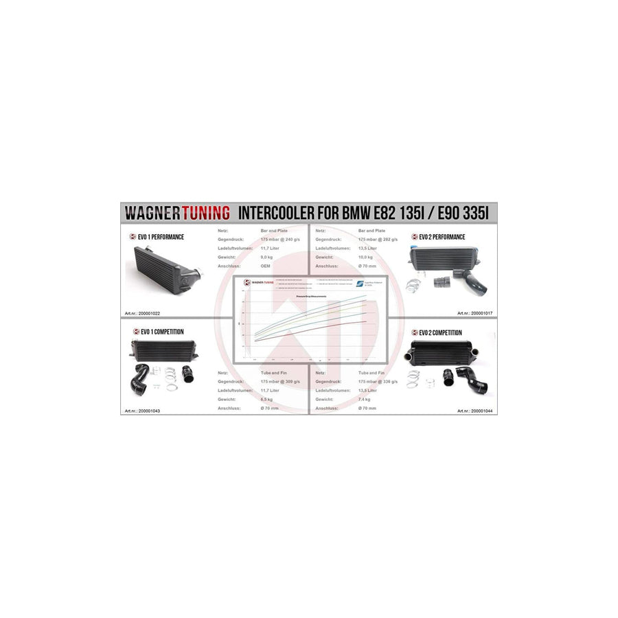 This Competition intercooler has the following core size (520mm x 210mm x 150mm / stepped = 13,572 cm³ ), providing a 85% larger frontal area and 90% more volume compared to the original intercooler. Our engineers have increased the intercooler core size and efficiency, as well as improved the end tank design to remove any OEM bottlenecks, resulting in increased flow rating and charge cooling properties. Wagner-Tuning "Competition" Core with high cooling performance and light weight (7,4kg) combined with cast aluminum optimized by CAD. Flow analyses and simulations were created to optimise the design for best possible Internal Airflow. This intercooler is the best choice when it comes to performance gains and low intake temperatures. A lot less pressure drop then OEM Intercooler. Anti Corrosion protective Coating with perfect thermal heat dissipating character. Optimal cooling with clearly more power. Kit is ready for installation, 100% perfect fit. Fitment is easy, replacing the OEM intercooler. All of our products undergo rigorous quality control.