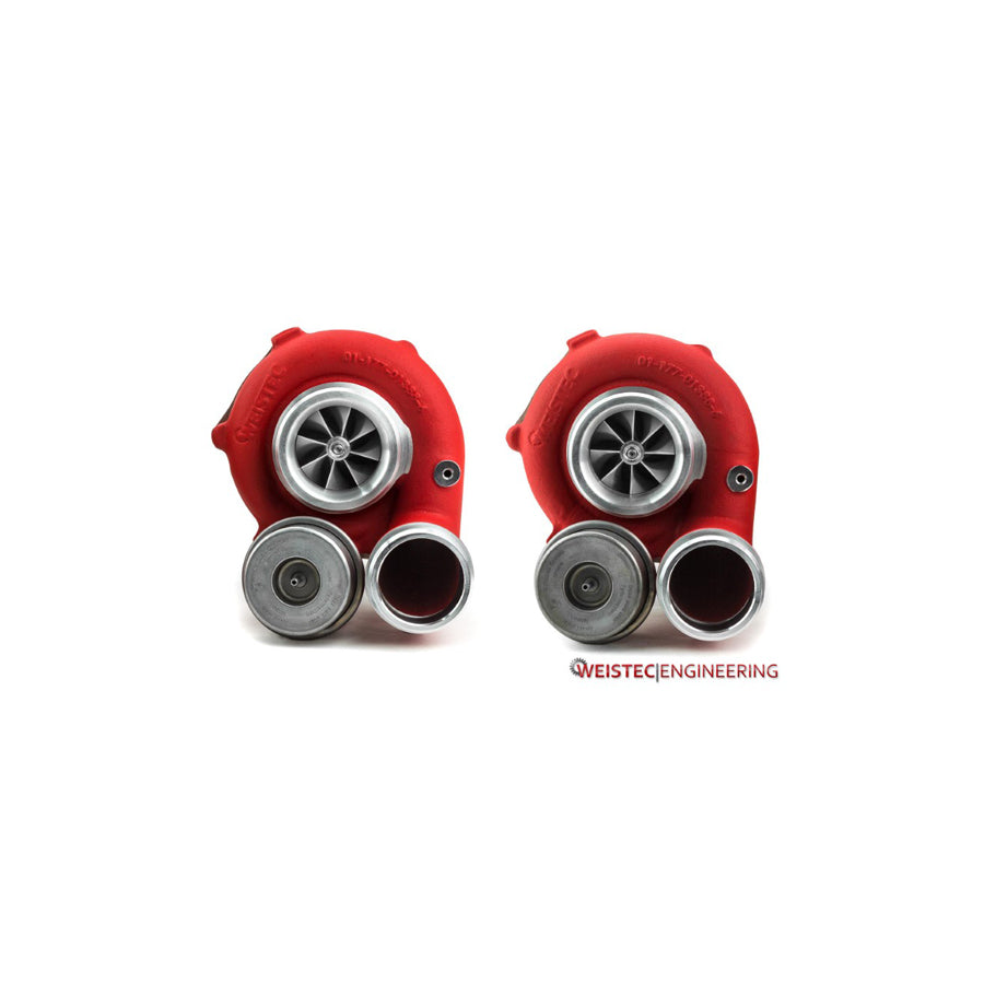 The turbo upgrade, as with all W.4 Upgrades, is a comprehensive turbo upgrade that completely replaces the factory turbocharges. The new turbochargers are ball bearing units with CNC machined billet aluminum compressor wheels rated much higher than the stock units. The Weistec compressor covers provide mounting for the OEM wastegate actuators and is compatible with the stock charge piping. A 3 inch anti-surge inlet is standard to provide unrestricted flow to the compressor.